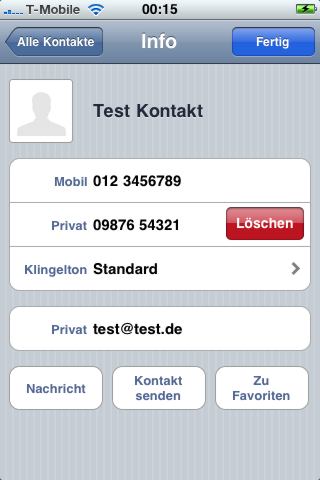 Ein Druck auf den eingeblendeten Lösch-Button entfernt den gewÀhlten Eintrag dann direkt aus dem Kontakt.