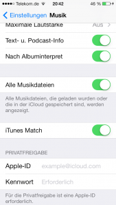 Hier liegt hĂ€ufig ein Problem mit der Privatfreigabe vor, obwohl diese eigentlich fĂŒr iTunes Match nicht benötigt wird.